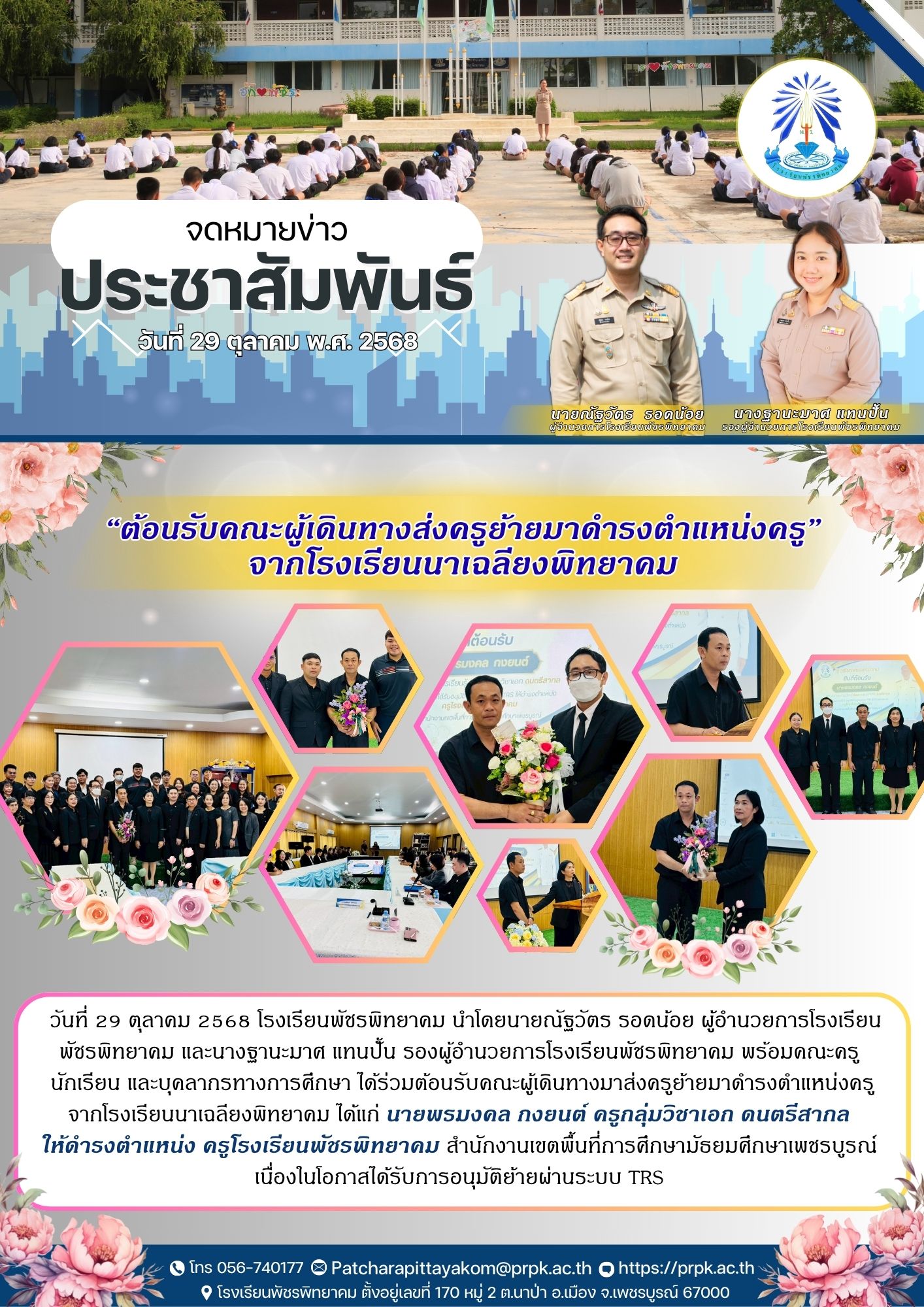 “ต้อนรับคณะผู้เดินทางส่งครูย้ายมาดำรงตำแหน่งครู” จากโรงเรียนนาเฉลียงพิทยาคม